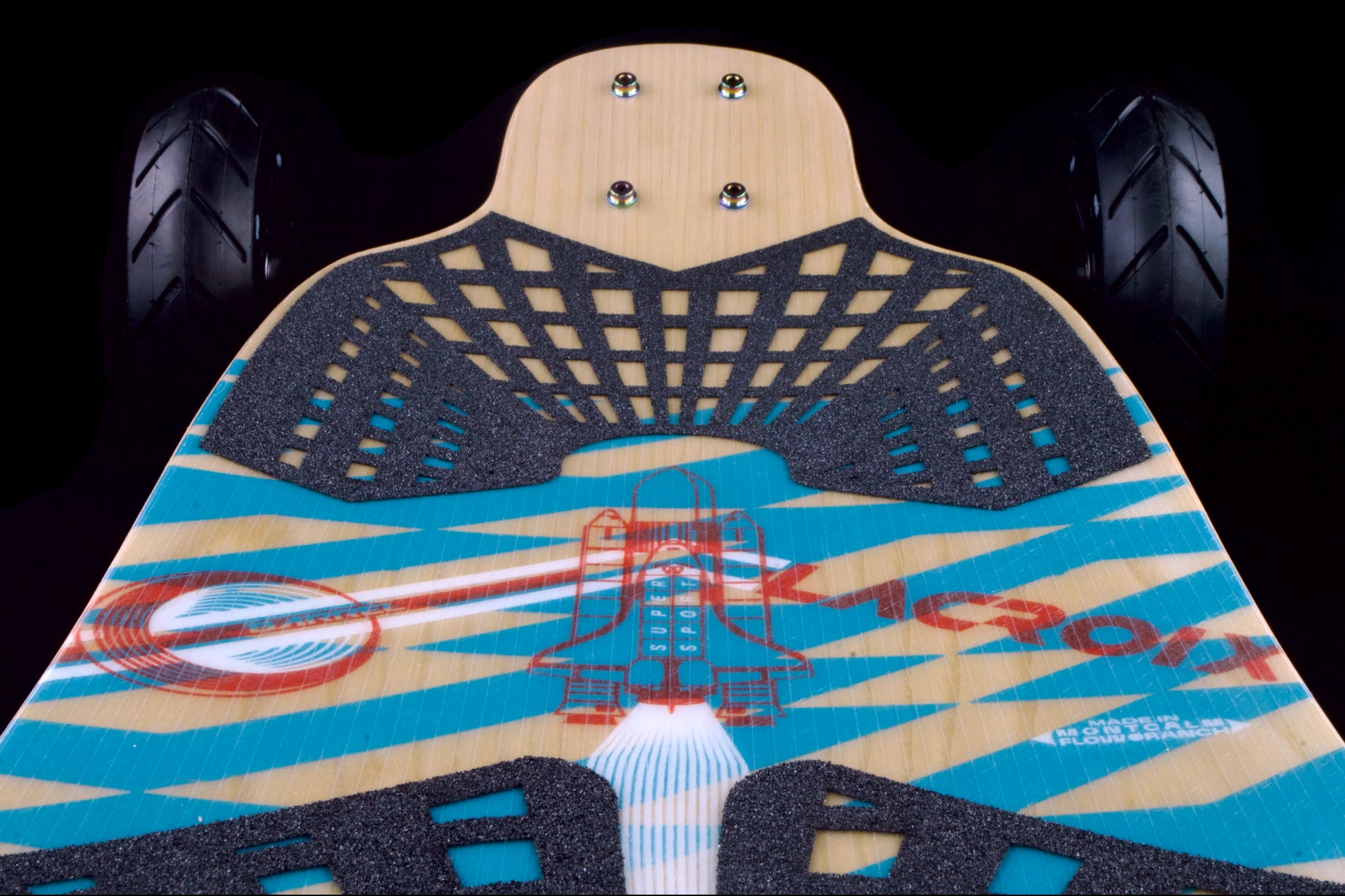 The Self Correcting Speed Wobble Tech™ is achieved by a bunch of factors - weight distribution on the Hypertrucks™, asymetry of the deck, bushings, width of truck, length of deck, etc.